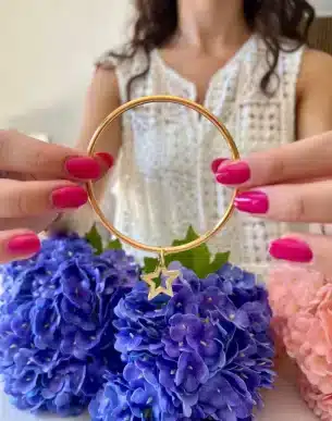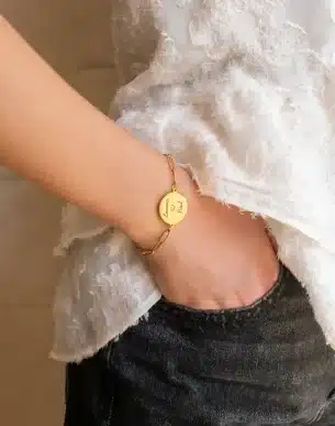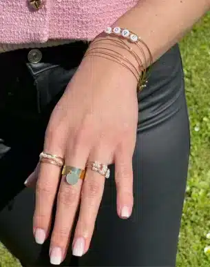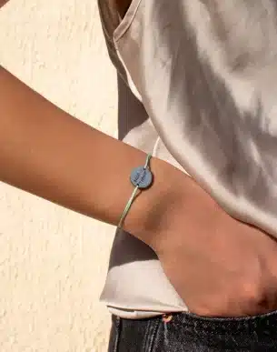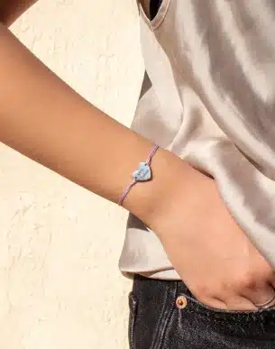 Boutique de bijoux de Toulouse : Mannequin qui porte Bracelet ajustable en pierre naturelle nacre en cordon