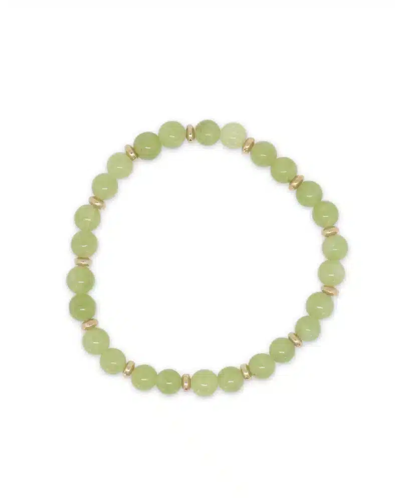 Bracelet élastique pour femme composé de pierres naturelles rondes Péridot. Les pierres naturelles sont de couleur vert.