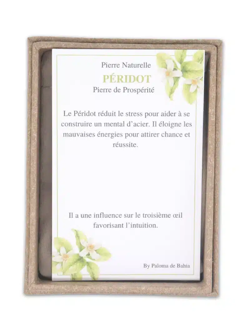 Le bracelet est livré dans une petite boîte marron et dans un pochon en coton avec une carte descriptive.